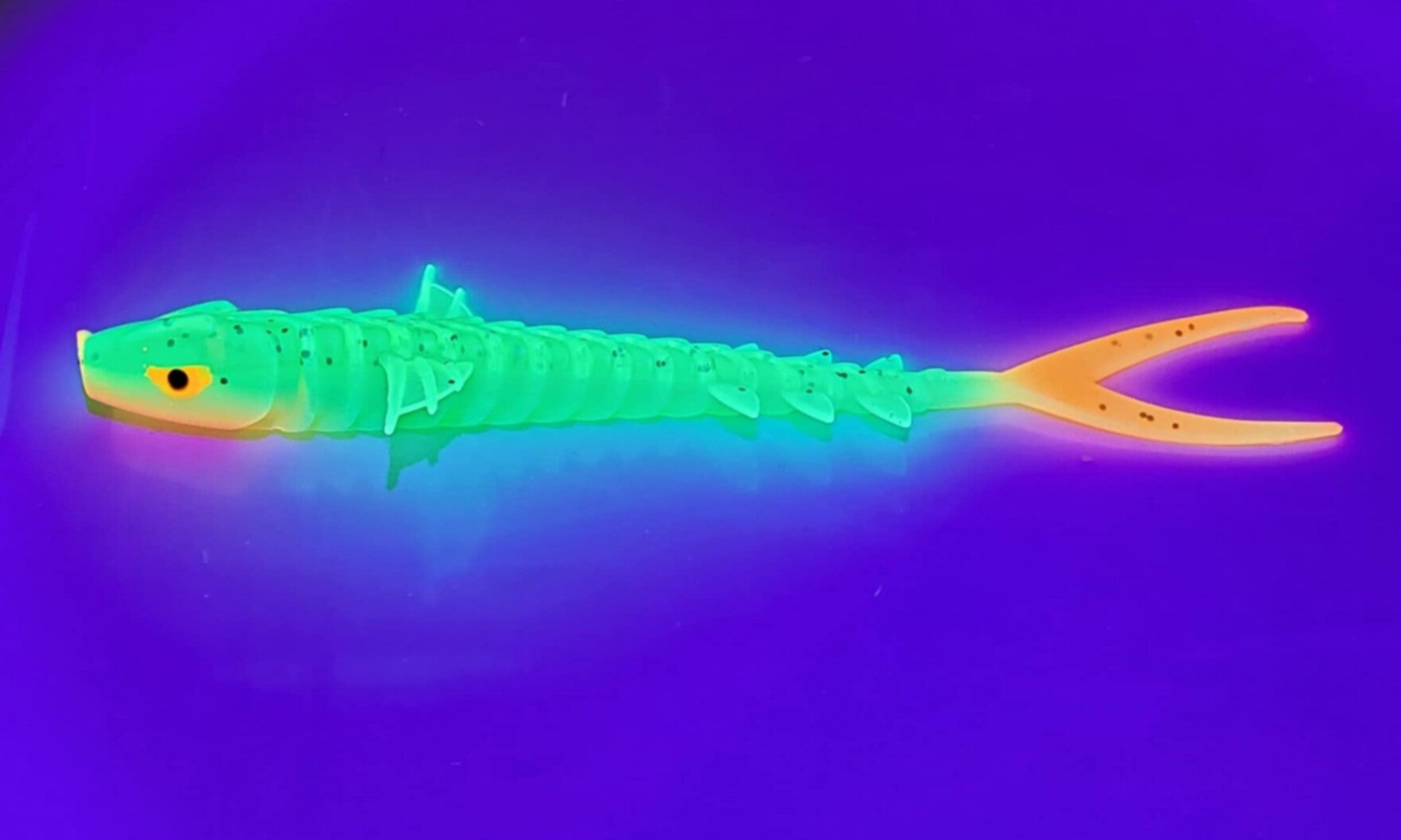 De aas gemaakt van zeer zachte floating selicone,waardoor het aas zeer realistisch speelt!