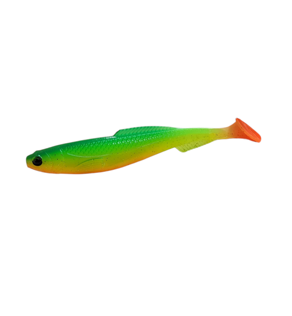 - Deze shad voorzien van een hoge body en een grote schoepstaart, dit geeft hem een fantastische zwemactie