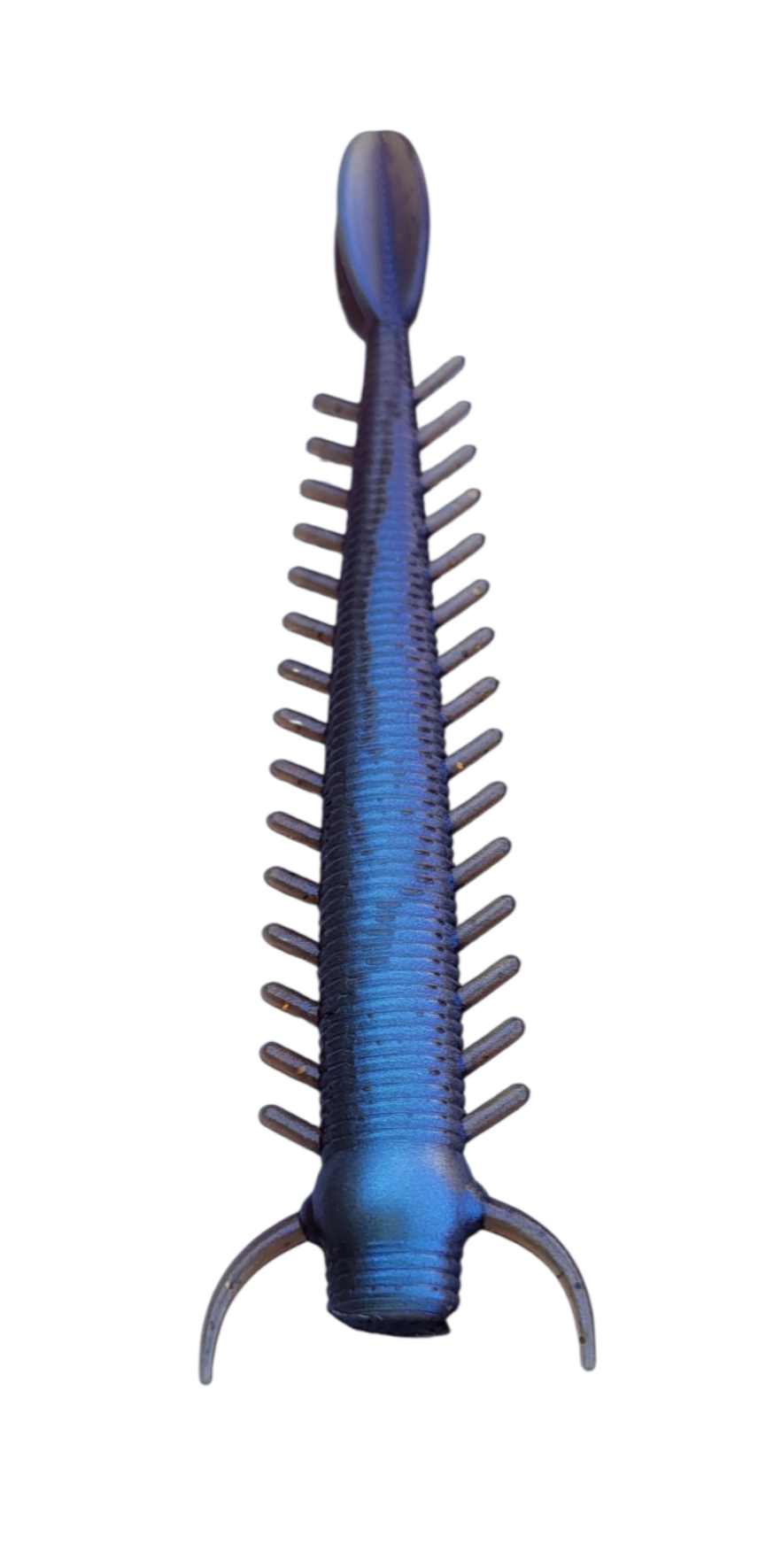 - Het kunstaas heeft een lichaam dat lijkt op een worm, met een groot aantal dunne pootjes aan de zijkanten.Door de vele bewegende elementen tijdens het inrijgen van het aas ontstaan er trillingen in het water, waardoor de aandacht van de roofvis wordt getrokken.